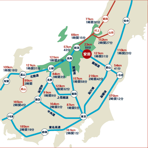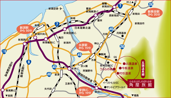 新潟空港から約20kmとアクセスも容易。新潟大学の近郊にあります。