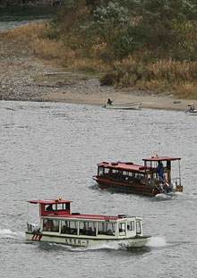 阿賀野川ライン舟下りの河岸の景色は、春は桜、夏は緑、秋は紅葉、冬は雪景色、四季折々の自然の雄大さを実感することができます。
