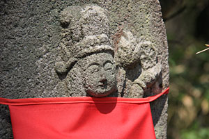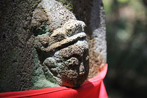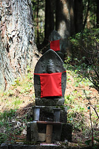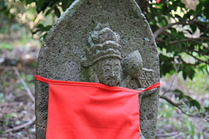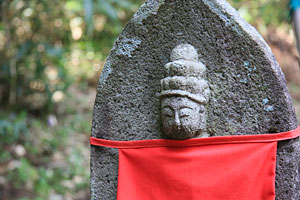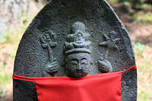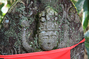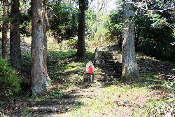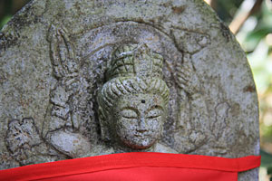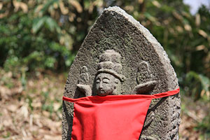 羽黒優婆尊の観世音菩薩像は、どれも1メートル前後の石仏で、森の中の小道に沿った斜面に点在している。三十三観音は、観世音菩薩が三十三の姿になり、あらゆる人を救い、あらゆる願いをかなえるという信仰に基づき、一ヶ所で数多くの観世音菩薩を拝み、多くの人々に功徳をもたらすために造られたもの。