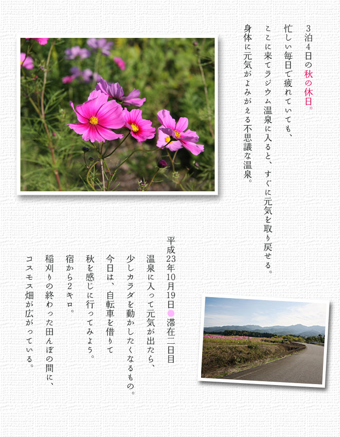 ラジウム温泉で健康に。 4つの無料貸切風呂 露天風呂付き客室 食事内容も自由に選べます。