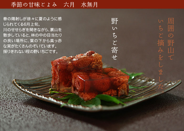 まずは、味見をしてから、色の濃い野いちごを選んで、果実酒を作りました。じっくり2年間寝かせて熟成させます。 そして、次にそのまま寒天で流してお料理コースのデザートにしました。 まだまだ、たくさん採れたので、野いちごジャムを作りました。バニラアイスにかけて食べていただきます。