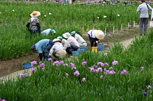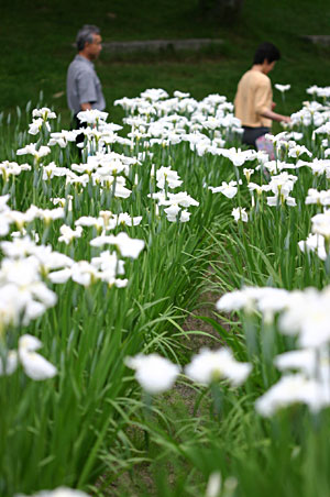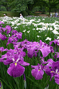 公園の奥の、風が通り抜ける谷間に、あやめ祭りの期間中は、60万本の花菖蒲が咲く