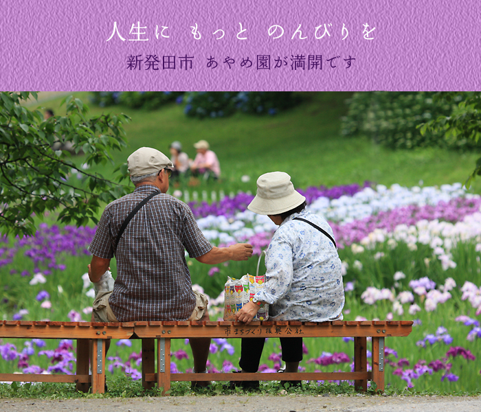 日常生活から離れて、あやめ園でのんびりとお過ごしください。