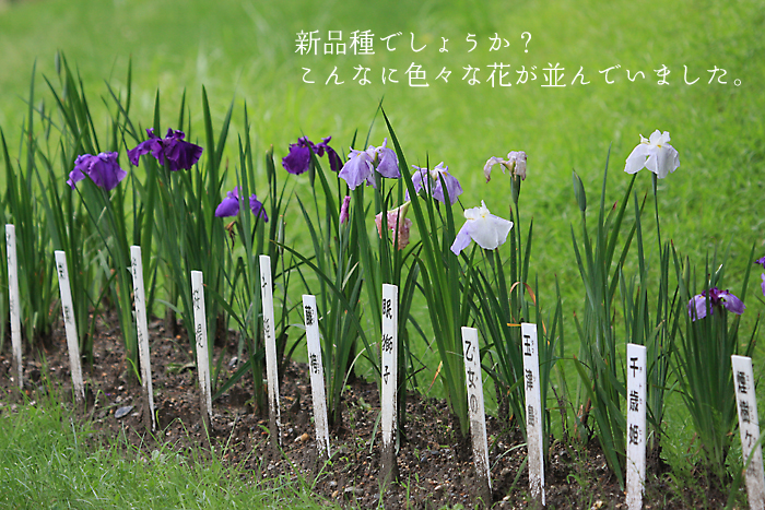 新発田市のあやめ園では、ほとんどの花の足元には、名前が表示されています。