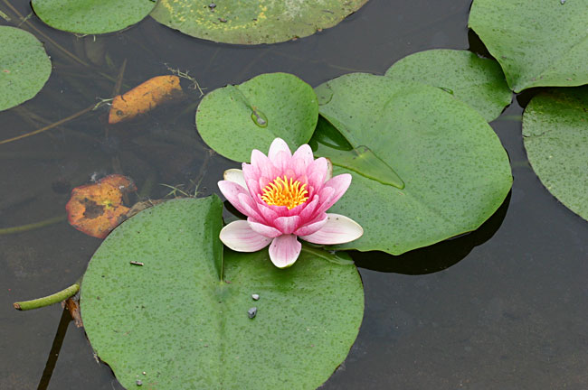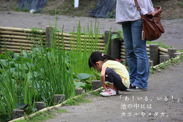 中央の池には小さな睡蓮。睡蓮と言えばメダカを連想してしまう。