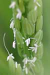 近寄らないと見ることができないくらい小さな可憐な白い花です。