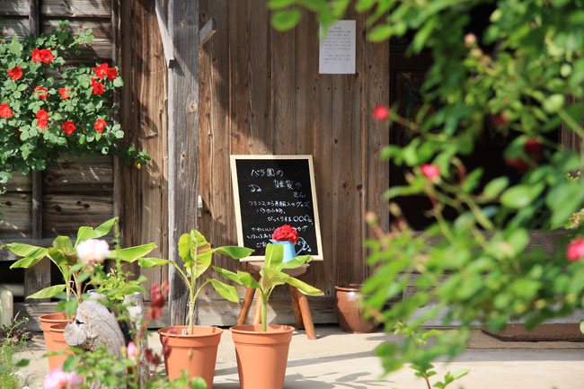昔の暮らしを感じることができるのが、オープンガーデンのバラ園の良さ。 |