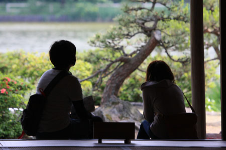 お屋敷の縁側に腰掛けて眺める 弁天池。
