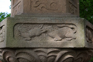 | ぐるぐる回りながら見ていると、十二支の動物が刻まれていることに気が付きました。 これは、子 牛。 |