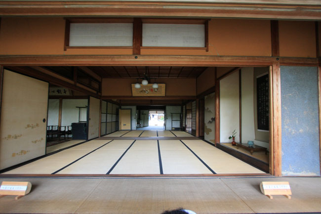 | 現存する屋敷は、明治17年(1884年)に完成したもの。 天井を見上げれば、黒光りするたくさんの梁に驚きます。 |
