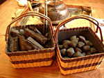 炭(左)と豆炭(右)