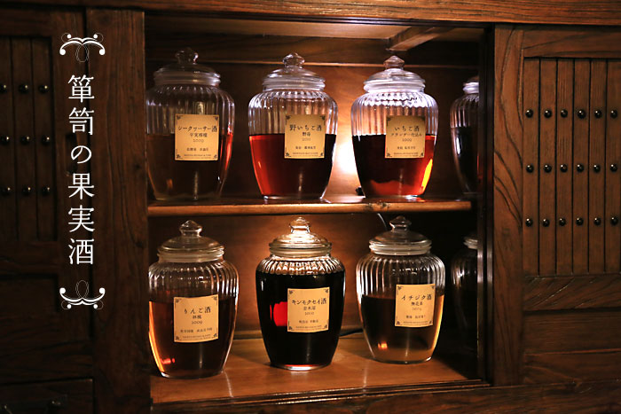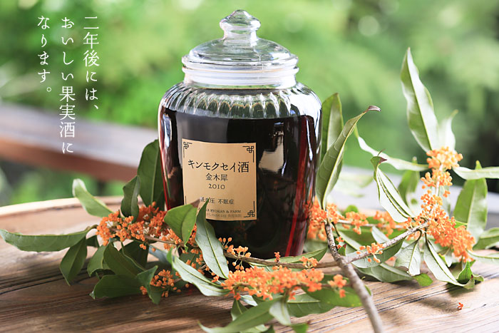 静かにゆっくり熟成します。 きんもくせい酒のほかにも50本以上の果実酒が出番を待っています。
