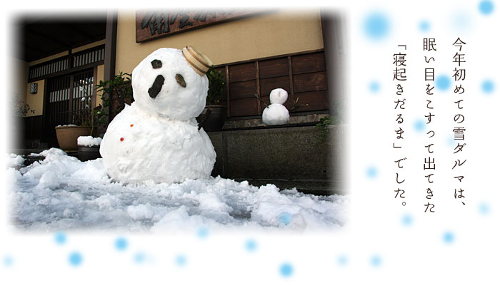 今年の初雪は、湿りの多い重い雪でした。 重い雪の除雪作業は本当に大変なことです。 除雪には厄介な重い雪ですが、雪ダルマ作りには向いている雪でした。 |