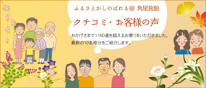 新潟県五頭温泉郷村杉温泉 ふるさとがしのばれる宿 角屋旅館のクチコミ・お客さまの声 |