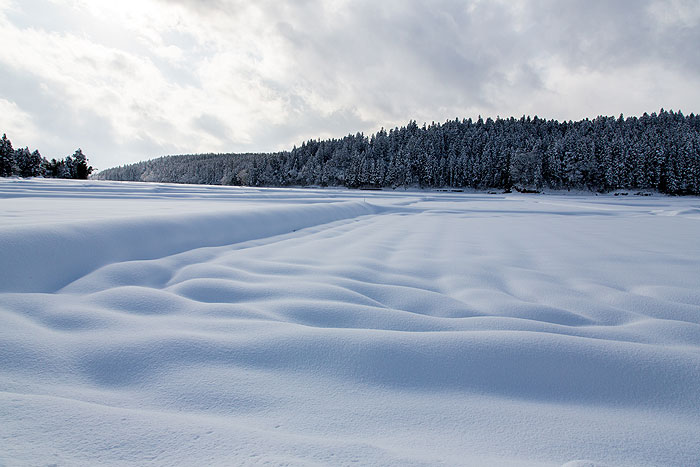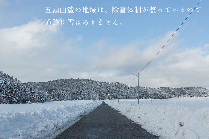 クルマの道路は、毎朝の除雪がしっかりしているので、雪はありませんが、誰も通ることのない田んぼの農道は春まで雪に覆われています。