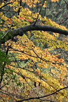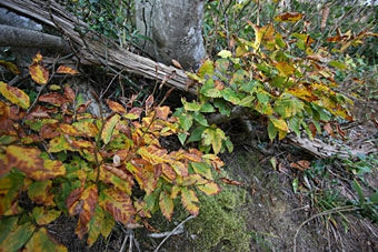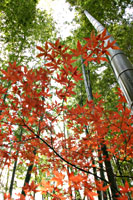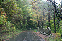 五頭山登山口の階段も色づいた紅葉の樹木に覆われていました。