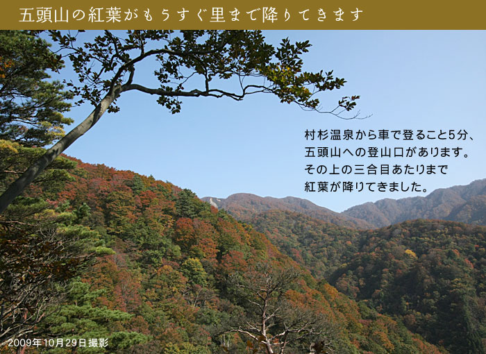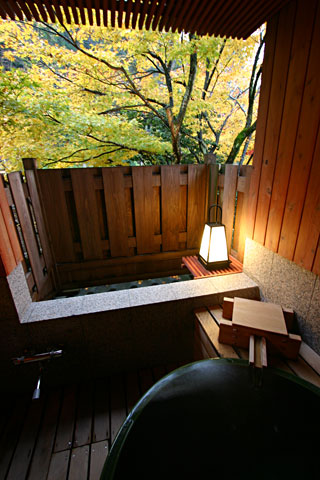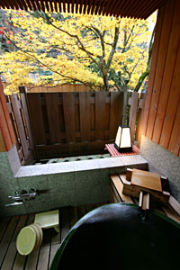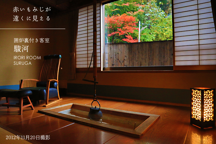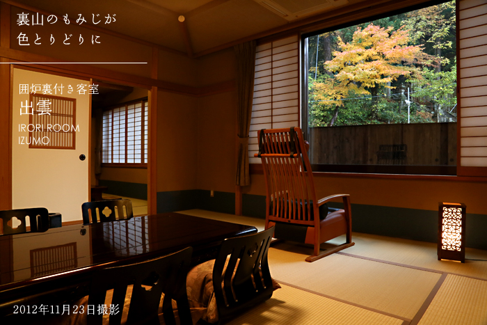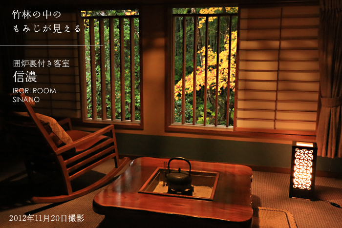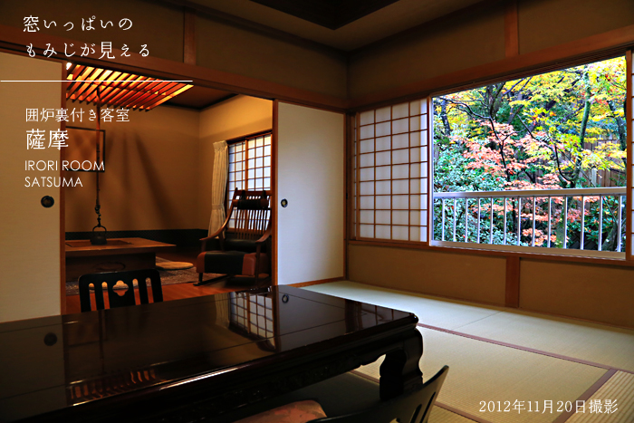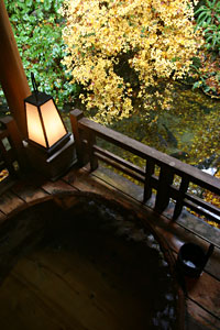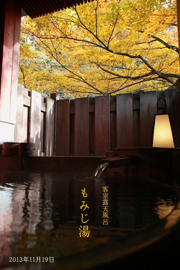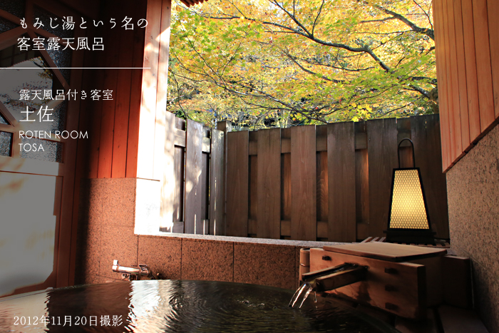この紅葉を楽しむためだけに、この部屋の一番いい場所に露天風呂を作りました。 だから、お風呂の名前は「もみじ湯」にしました。