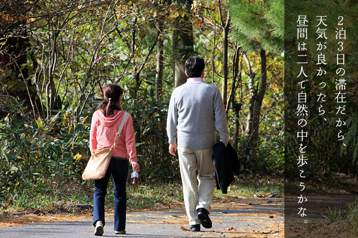 昼間は、軽いウォーキングや、野山で過ごすことで身体を動かし、体温を下げないようにします。