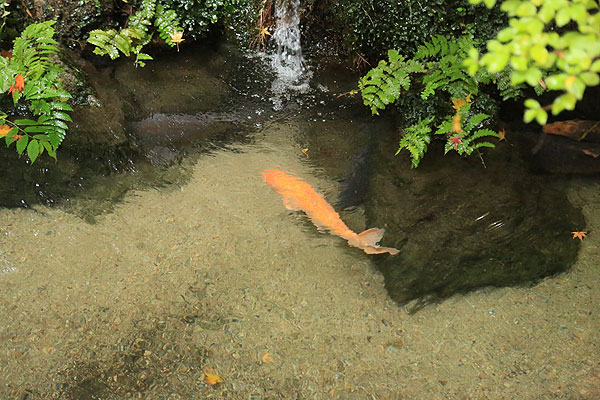 お風呂場の池の鯉も、なんだかモミジ色に見えてきました。