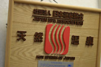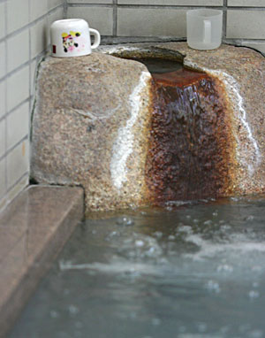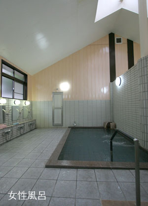 浴室は男女とも天井の高く、ゆったりと手足を伸ばすことができる深めの浴槽。お湯の温度は、角屋旅館の温泉よりも少し熱めの約42〜43℃。 |
