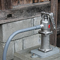 この源泉を直接汲むことができるポンプは手動式。