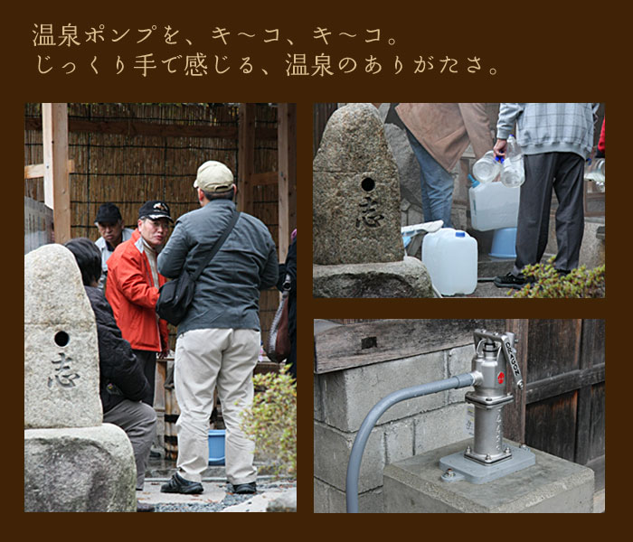 飲用上の注意事項及びポンプ操作方法 [抜粋] −詳しくは飲泉所の掲示を熟読の上ご利用下さい−