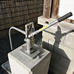 1.ハンドルを上下し、源泉をくみ上げて下さい。その際、最初の数回は源泉が出ないことがありますが、7回程度ハンドルを上下させると、源泉を汲み上げます。