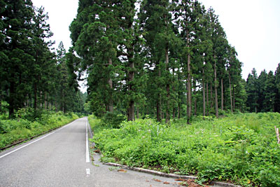 五頭山への登山口へと続く舗装道路を登って行くこと10分。五頭連峰県立自然公園に指定されている五頭連峰の麓の森の中。 百年近く前に植林された国有林の杉林は、モデル林として、丁寧に間伐されています。 そのため、大変日当たりがよく、様々な植物が育ち、私たちに豊かな恵みを与えてくれます。