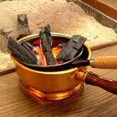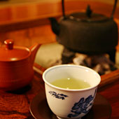 おじいちゃんの家に帰った気分で、囲炉裏に肘を突いて、2人でお茶などいかがですか。