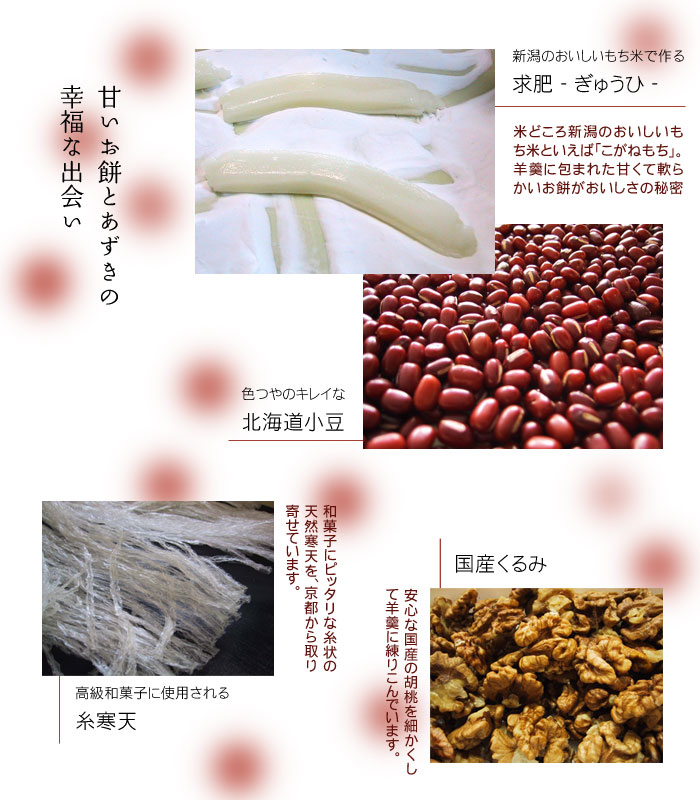 テレビ朝日のスタッフにご協力いただき、TVチャンピオン400回記念「和菓子職人チャンピオン大会」で優勝した和菓子職人の指導を受け、新潟のもち米を生かした極上の和菓子ができました。
