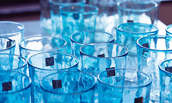 ガラスの砂、ガラスのミニチュアを接着剤を使ってデコレーション。好きな曲目を選んで、自分だけのオルゴールを作ります。