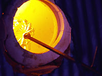 溶けているガラスを宙吹きして、自分だけのマイグラスを作ります。