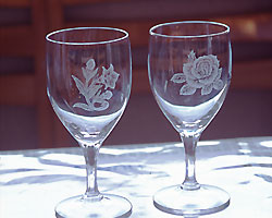 ガラスにルーターという研磨機で削って絵や文字を入れられます。びいどろオリジナル製品に更にあなたのオリジナルを加えた作品、旅行記念に、プレゼントに・・・