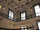 白漆喰仕上げの壁や柱、1階の銀行時代のままのカウンター、電話ボックスなどが、明治時代のままの姿で残されています。