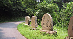 ●句碑歌碑の杜「やまびこ通り」は、出湯よりの一方通行を守ってください。