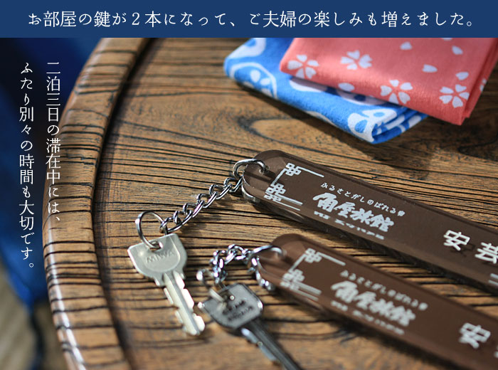 “かかりつけ温泉”として定期的にご利用いただくお客様のご要望で、お部屋の鍵が2本になりました。