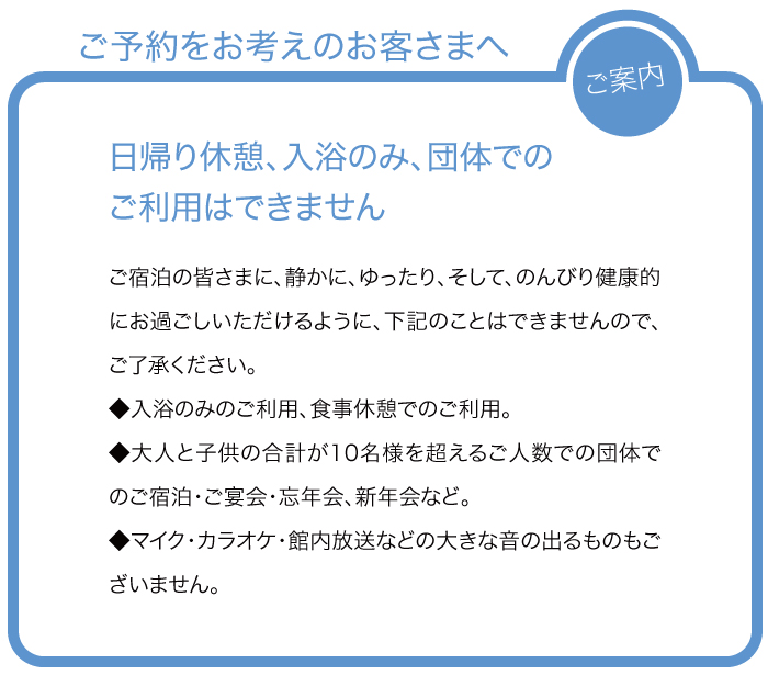 ※ご宿泊料金の計算には、1室あたりの大人だけのご人数で計算します。 (小学生以下は含みません)