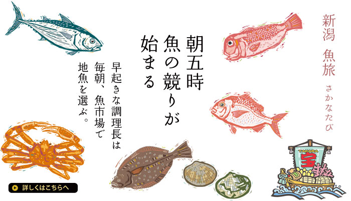 新潟の地魚料理が得意な角屋旅館の太田調理長が、一年間に仕入れた季節の地魚を一挙ご紹介。