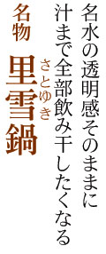 「お鍋のお汁を一滴残さず頂ける」 と好評な角屋旅館の里雪鍋。