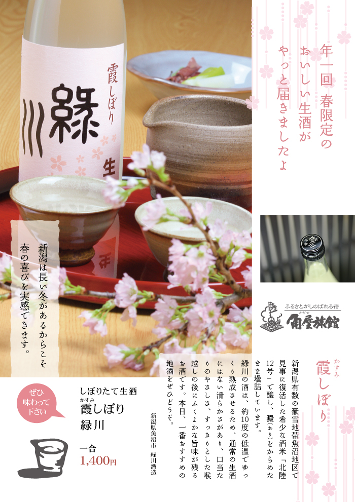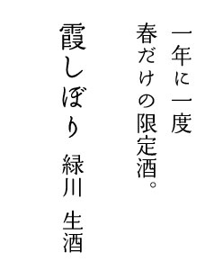 一年に一度だけ。新潟県魚沼市の酒蔵「緑川」からの春の限定酒「霞しぼり」です。