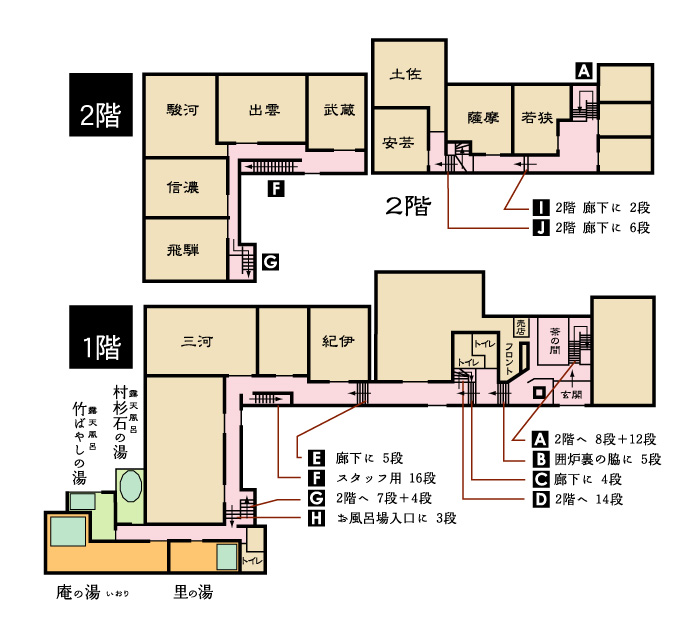 このお部屋はお風呂のすぐ近くですので、 お部屋からお風呂までは、階段G [7段+4段]を利用します。