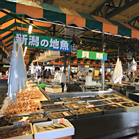 日本海の獲れたて鮮魚から、産直野菜、果実、県内産肉、越後の米や銘酒まで揃う「にいがた食市場」