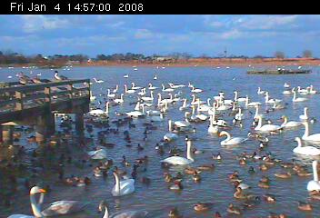 集まった白鳥が徐々に増えてきます