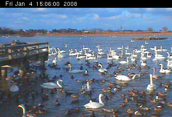 瓢湖で一日三回実施される餌付けが終わって、わずか10分後にはこの通り。