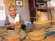 今板地区では、昔から冬の間の作業として、竹かご作りが盛んでした。今ではだいぶ後継者も減ってきましたが、小学生の頃から始めた竹かご作りを今も毎日続けています。 本当に小さな作業場で、毎日竹かごを編んでいます。