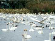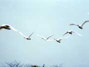 毎年10月から3月までの6ヶ月のあいだ、瓢湖(水原町)には5,000羽もの白鳥がシベリアからやってきます。