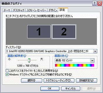 【マルチディスプレイ設定画面】 [ WindowsXPの場合 ]
