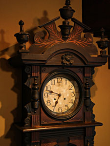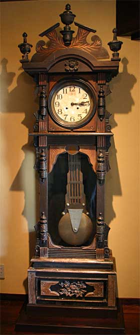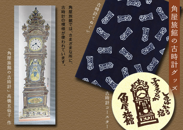 角屋旅館の宝物の一つ、大正時代から動き続ける大きな古時計。