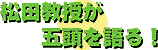 【五頭温泉郷の助っ人は】 原田大二郎 氏 温泉復興立会人 山田 強 氏 TVチャンピオンのお菓子職人 服部幸應 校長 服部栄養専門学校 石鍋 裕 シェフ フレンチの鉄人 松田忠徳 教授 札幌国際大学温泉文化論 季刊「温泉主義」編集長