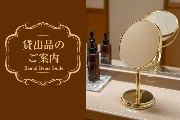 客室でゆっくり身支度をしていただけるよう、洗面台のほかに、貸出用のメイクアップミラーを2種類ご用意しました。